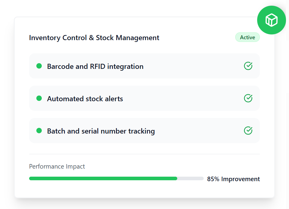 Gain full visibility and control over your inventory with real-time tracking and intelligent stock management.