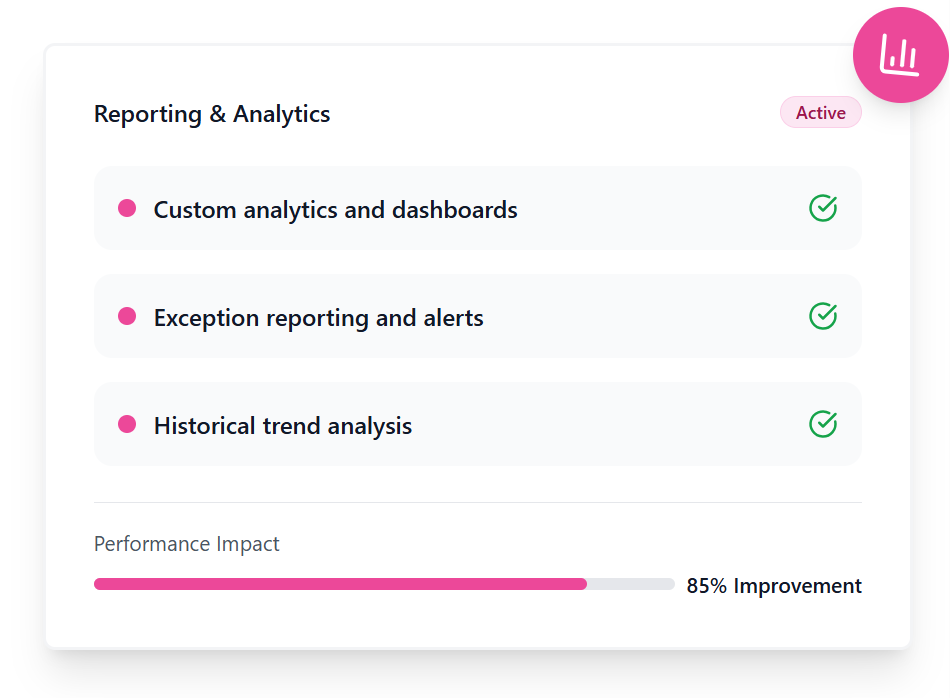 - Reduces manual reporting effort