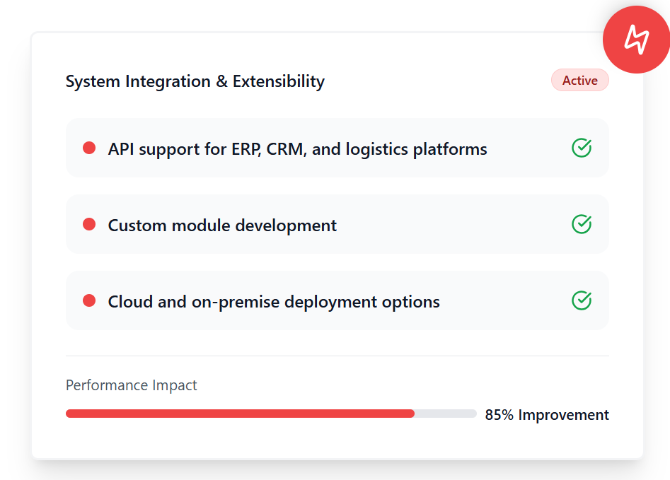 - API support for ERP, CRM, and logistics platforms